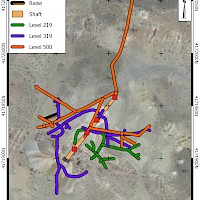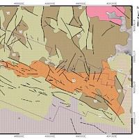 High grade gold mineralization was discovered at Goldfield in 1902 and mining was conducted continuously in the Goldfield Main area until 1952 and continued intermittently to this day at several small operations. Production to date from the district is approximately 4.2 M oz Au. Gold in the Goldfield District is found in residual (vuggy) silica ledges and replacements in permissible horizons in the Milltown Andesite, the Goldfield Dacite and underlying units. Quartz alunite alteration associated with the deposits is extensive and defines the structural controls on ore deposition. These include a circular fracture ring centred on a presumed buried intrusive body east of Goldfield and a linear feeder system connecting to the eastern margin of the circular fracture ring. The East Goldfield Project covers the linear fracture system.